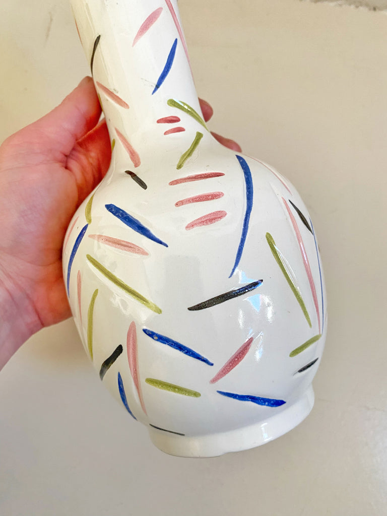 Lampe en céramique signée et numérotée, années 50 avec abat jour en raphia