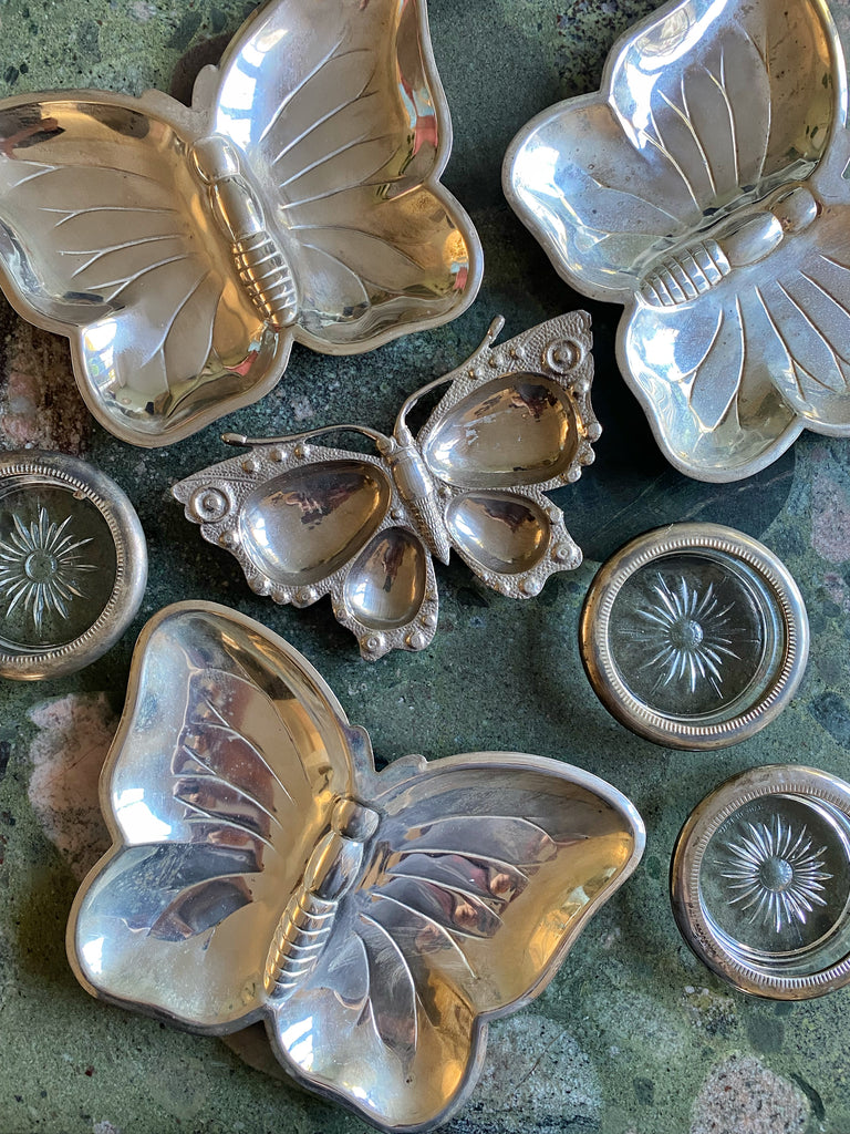En métal argenté et verre ciselé