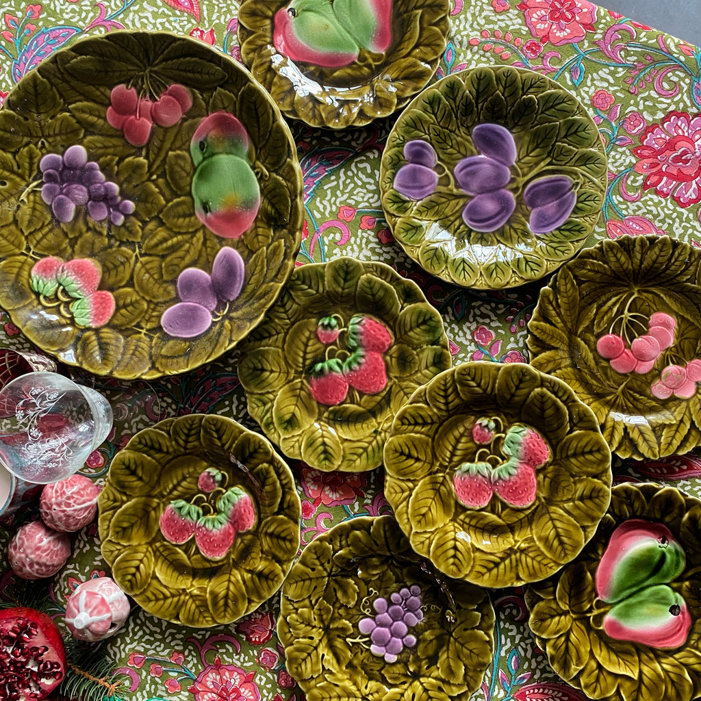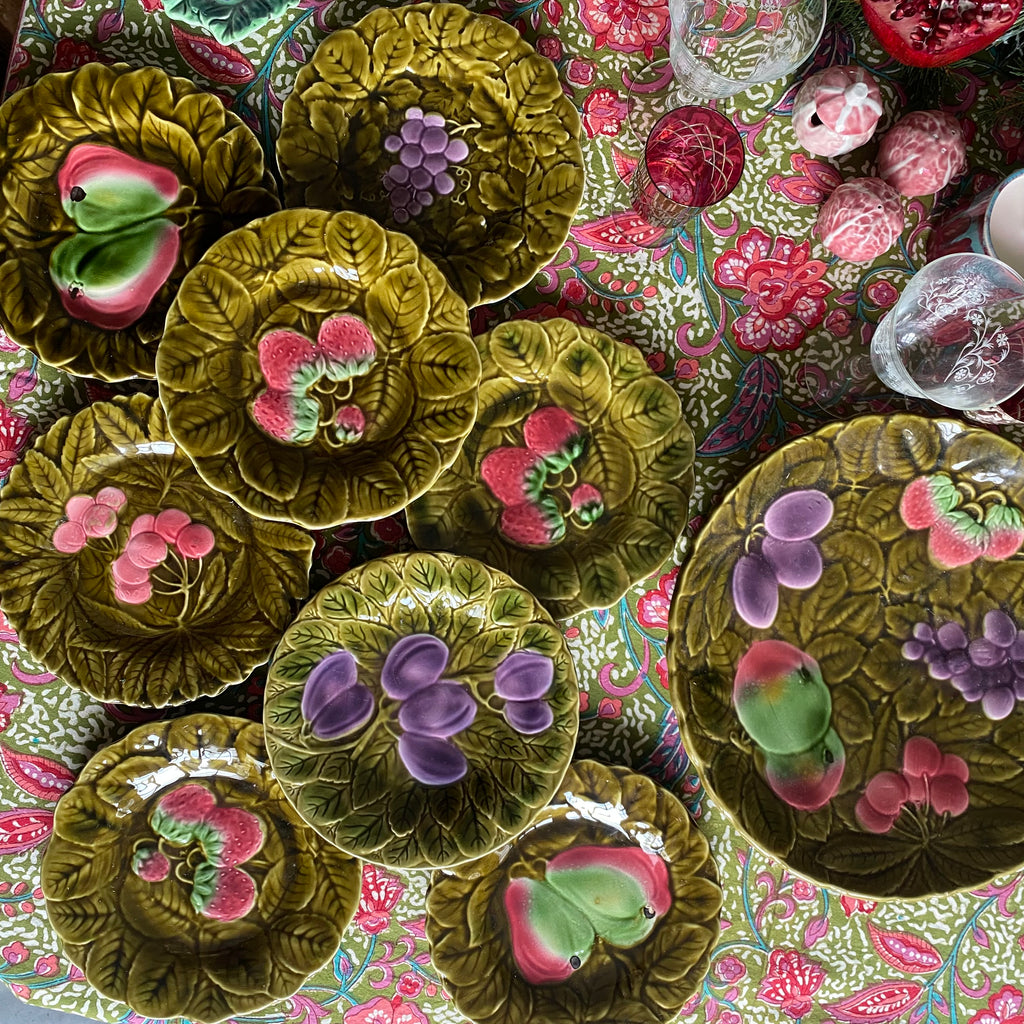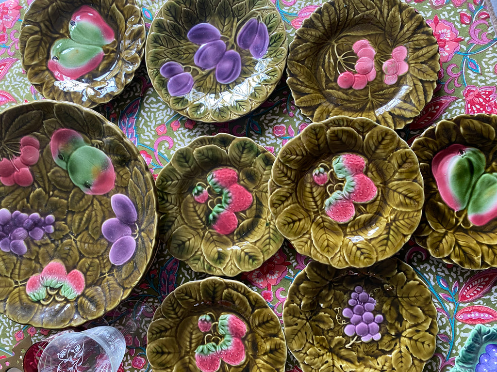 lot de 8 assiettes en barbotine signées Sarreguemines