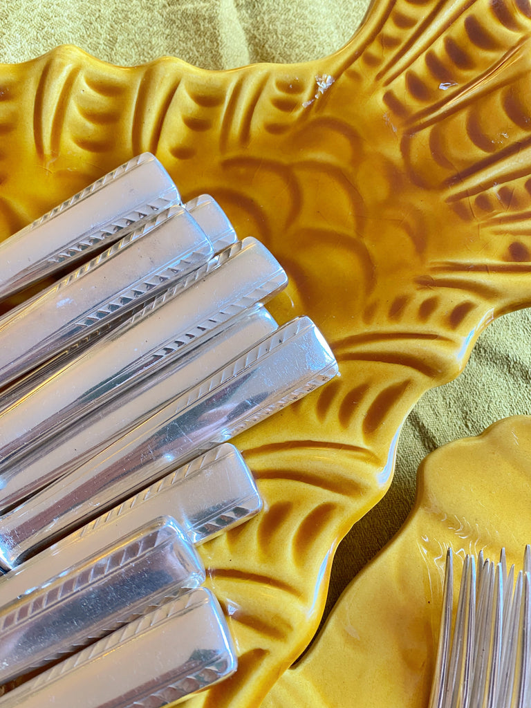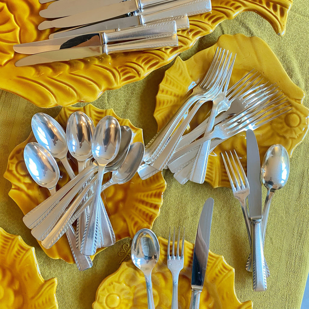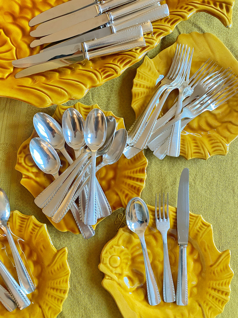 Ménagère complète ancienne pour 12 personnes en métal argenté